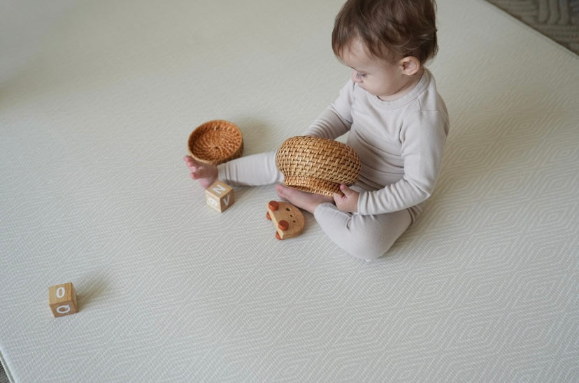 • Roll playmat onto a flat, even surface. Your playmat may roll/curl up on either side initially. This is normal due to the nature of the foam and your playmat will soften out over time.